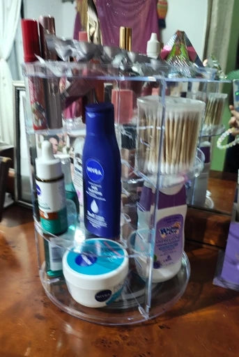 A diferencia de otros, este organizador combina rotación silenciosa, capas ajustables y ranura superior para artículos altos, logrando mejor acceso, mayor orden y uso práctico diario.
